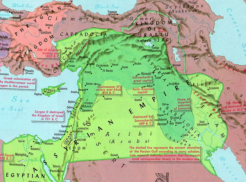 Οι Ασσύριοι, σκληροί πολεμιστές καθώς ήταν και με εξαιρετική στρατιωτική οργάνωση άπλωσαν γρήγορα την κυριαρχία τους στη Δυτική Ασία και στην Αίγυπτο.