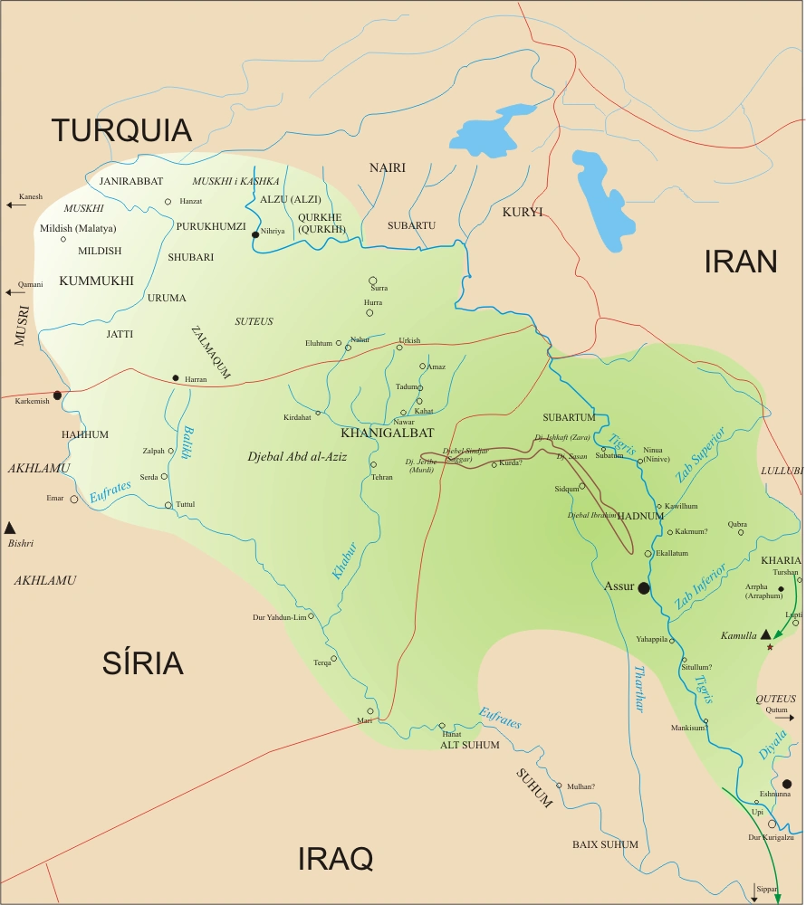 - Ιστορική χώρα της Μεσοποταμίας στην κοιλάδα του Τίγρητα. Η περιοχή αυτή, όπου σήμερα βρίσκεται το ΒΑ Ιράκ, είναι μεγάλη χαμηλή πεδιάδα με μικρούς λόφους και διαρρέεται από τον ποταμό Τίγρη και τους παραπόταμούς του. Τα άφθονα ύδατα και το καλό κλίμα έκαναν και στην αρχαιότητα τον τόπο αυτόν από τις πιο γόνιμες χώρες της Ασίας.