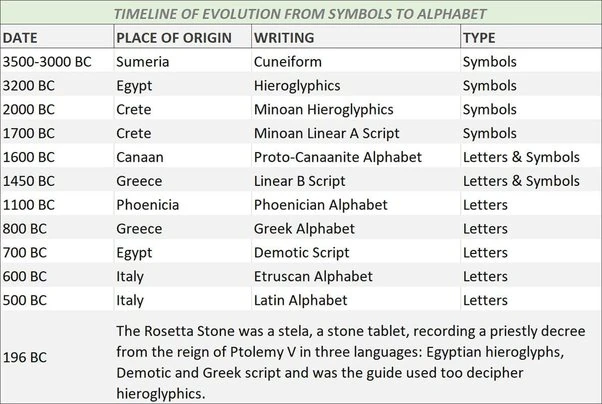 Από την Αιγυπτική Γραφή αναπτύχθηκε το Φοινικικό Αλφάβητο, που δημιουργήθκε γύρω στο 1050 π.Χ. και στο οποίο μπορούν να αναχθούν όλα σχεδόν τα αλφάβητα που χρησιμοποιήθηκαν ποτέ.