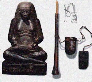 Η εξέλιξη της γραφής αυτής (ιερογλυφικής) διαβάστηκε για πρώτη φορά από το Γάλλο αρχαιολόγο Σαμπολιόν. Η γραφή αυτή λεγόταν ιερογλυφική, γιατί την έγραφαν ιερείς. Πράγματι η ιερογλυφική γραφή είναι φοβερά δύσκολη τόσο απ' την πλευρά της συγγραφής, όσο και απ' την πλευρά της ανάγνωσης. Στην αρχαία Αίγυπτο μόνο οι ιερείς είχαν τη δυνατότητα να τη μελετήσουν και να τη μάθουν, γιατί η γνωριμία με τη γραφή απαιτούσε ασχολία πολλών χρόνων. Εκτός από τους ιερείς υπήρχαν ειδικοί άνθρωποι, κάτι σαν επιστήμονες εκείνης της εποχής, οι ονομαζόμενοι γραφείς.