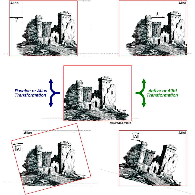 Αντίθετα ένας Παθητικός Μετασχηματισμός (passive transformation} δρα στο Φυσικό Περιβάλλον (δηλ. αλλάζει το σύστημα συντεταγμένων ( coordinate system), χωρίς επιπτώσεις στην φυσική του κατάσταση) .