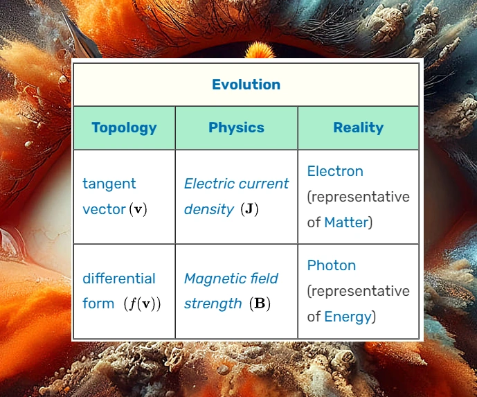 Η εξελικτική σχέση Τοπολογία (διαφορική μορφή) - > Φυσική (Μαγνητικό Πεδίο) - > Πραγματικότητα (φωτόνιο) δεν είναι φιλοσοφική άποψη, είναι απτή λογική διαπίστωση.