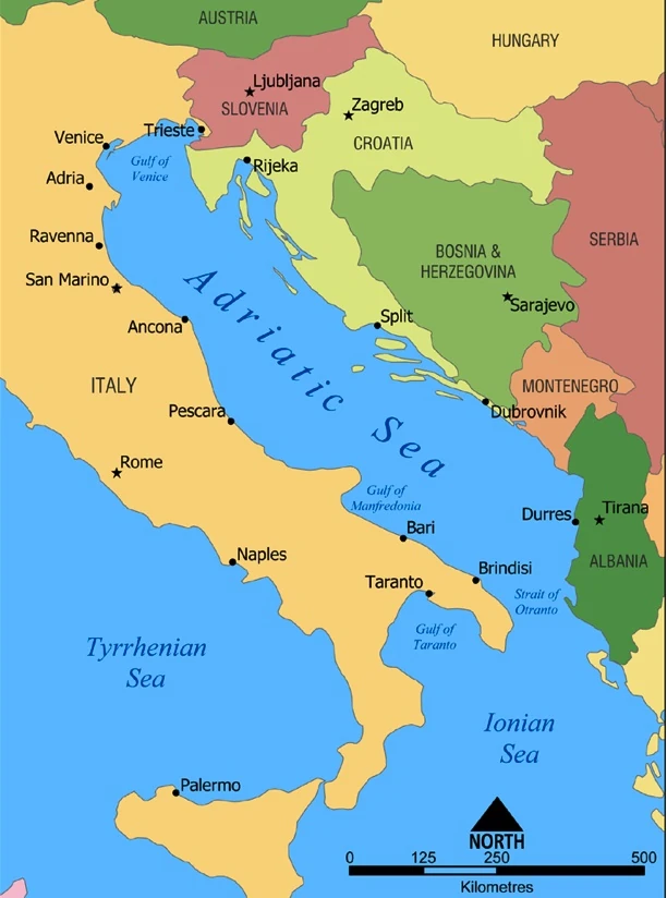 Είναι θαλάσσια περιοχή δυτικά της Ελλάδας, βρέχει τις Ιταλικές ακτές της Καλαβρίας, της Απουλίας και της Σικελίας, προς νότο απο το τμήμα της Μεσογείου μεταξύ Μάλτας και Κρήτης και προς ανατολάς απο τη νότια Αλβανία και την δυτική Ελλάδα.