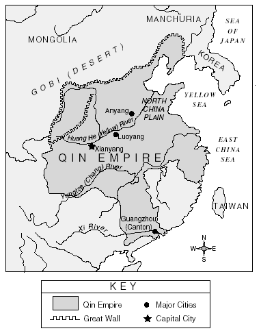 Το 221 π.Χ. ένας ηγεμόνας, ο Τσιν Σι Χουάνγκ - Τι, κατάφερε να ενώσει όλα τα βασίλεια της Κίνας και να στεφθεί αυτοκράτορας. Ο ηγεμόνας αυτός πολέμησε με τους Ούννους και αποπεράτωσε το μεγάλο Σινικό Τείχος. Καθιέρωσε ακόμη για όλη την Κίνα ενιαία μέτρα και σταθμά. Παράλληλα όμως έδωσε εντολή να καταστραφούν τα βιβλία και τα κείμενα του Κομφούκιου, πράγμα που τον έκανε πολύ μισητό. Τελικά το 206 π.Χ. εξέσπασε επανάσταση και στην εξουσία ανέβηκε άλλη δυναστεία, οι Χαν.