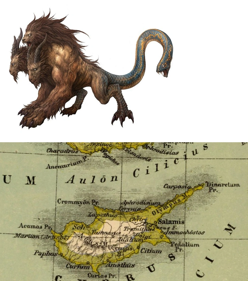 - Κυπριακά Κεραύνια Όρη (με μία κορυφη Κόρνος) (σημ. Πενδάκτυλος) (πιθανώς σε αυτά αναφέρεται ο Διόδωρος στα περί Αιγίδος)