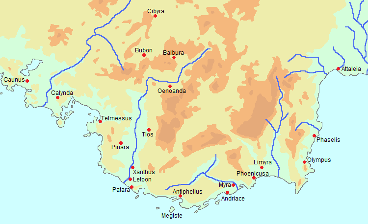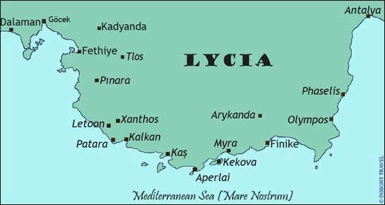 Η Λυκία βρίσκεται στο νοτιοδυτικό τμήμα της Μικράς Ασίας.
