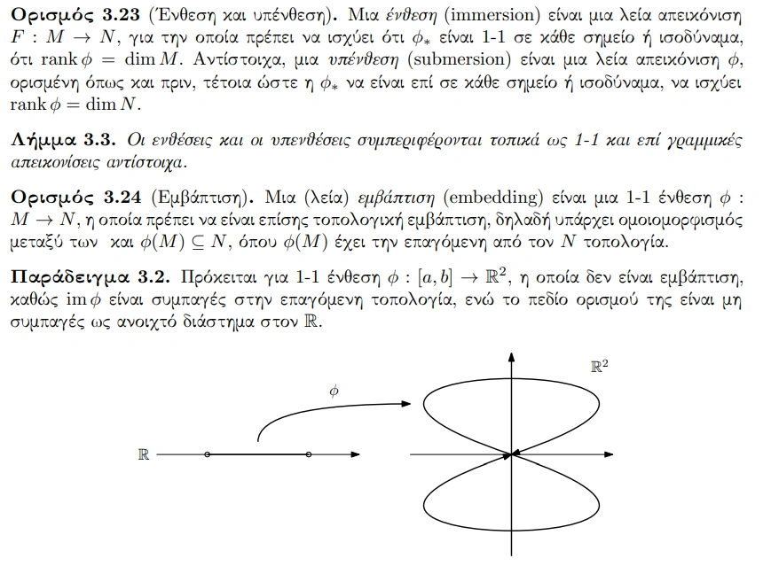 - Αντίθεση με την Εμβάπτιση: Μια ομαλή εμβάπτιση είναι μια εμβάπτιση που είναι επίσης μια τοπολογική ενσωμάτωση, που σημαίνει ότι είναι ένας ομοιομορφισμός στην εικόνα της. Μια εμβύθιση είναι μια «τοπική εμβάπτιση».