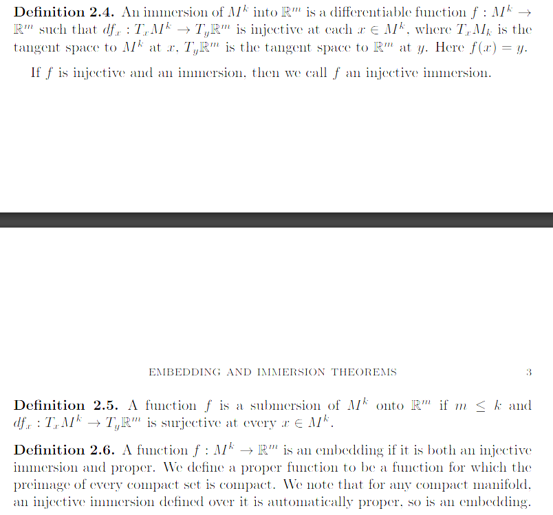 Αυτό σημαίνει ότι η συνάρτηση είναι τοπικά ένα προς ένα, αλλά σε αντίθεση με μια εμβάπτιση, η ίδια η συνάρτηση δεν απαιτείται να είναι ενάρτηση καθολικά, επιτρέποντας έτσι αυτοτομές.