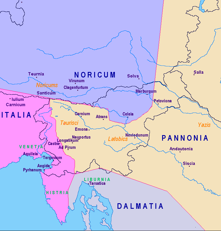 Ραιτία, Παννονία, Νωρικό, Ιλλυρία, κατά την Ρωμαϊκή Εποχή.