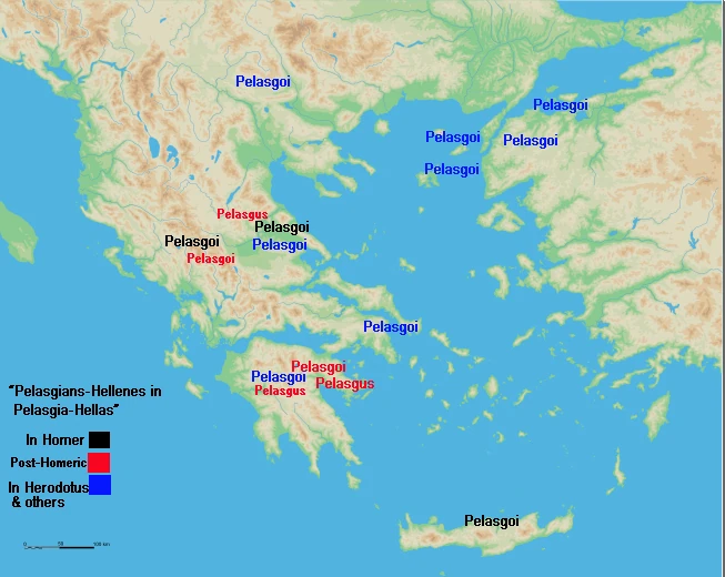 - (*) Για τη διάκριση πελασγική - ελληνική, δείτε παρακάτω