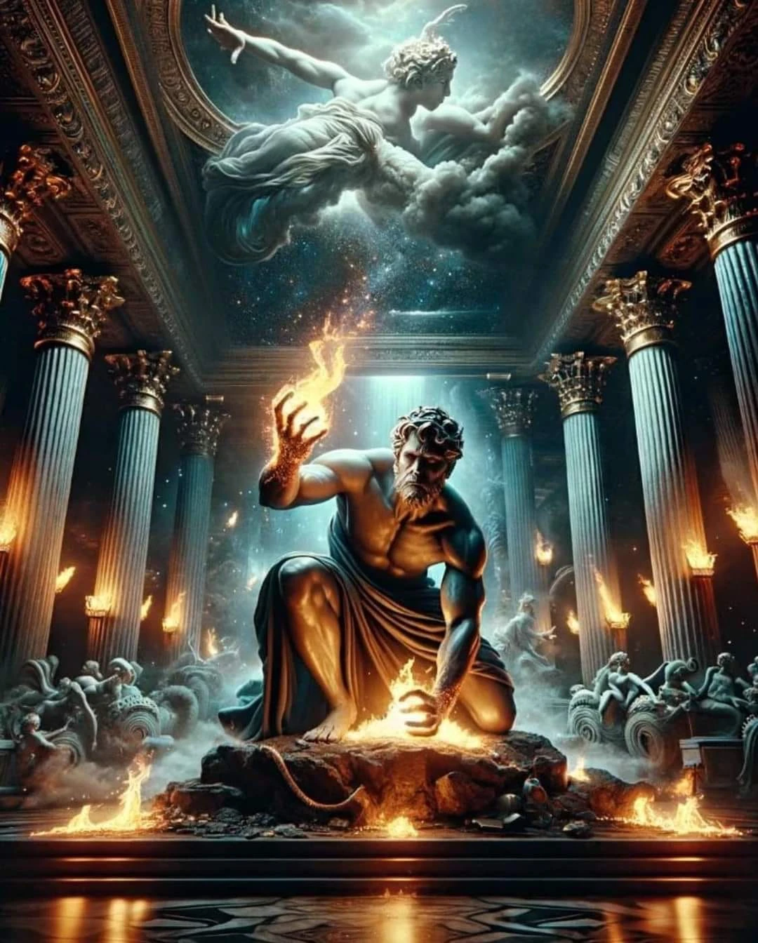 Όλοι συνειδητοποίησαν την μεγάλη απειλή. Η πυρά ήταν μόνον η αρχή. Η ανθρωπότητα γρήγορα θα αποκτούσε βαθμιαία όλα εκείνα τα τεχνολογικά εφόδια που θα της επέτρεπαν, σε κάποια εποχή, να εξασφαλίσει την αυτοδυναμία της, να αποτινάξει την κηδεμονία των Ολυμπίων και να τους αποκηρύξει από το θεϊκό αξίωμά τους.