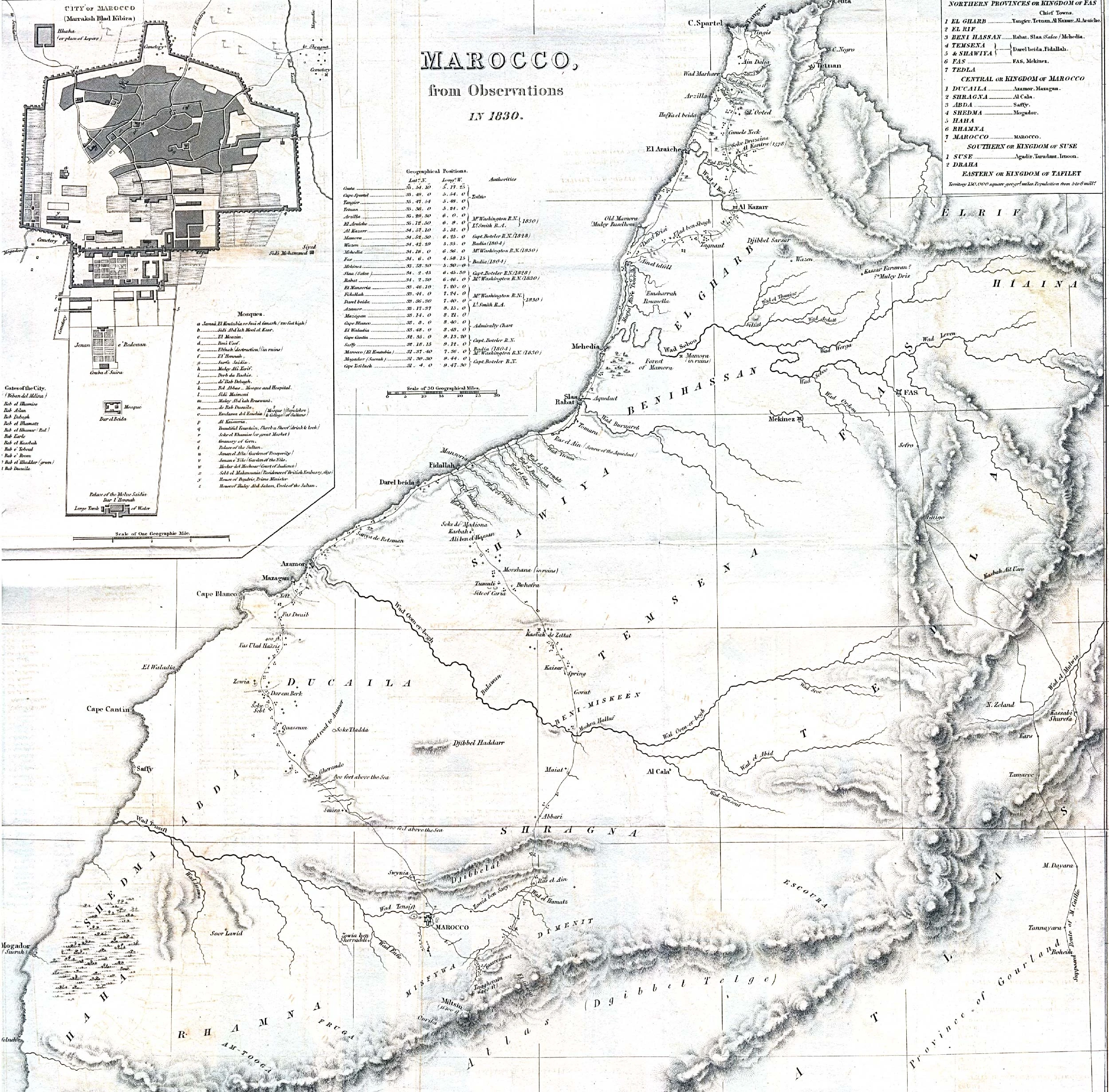 - καὶ ἡ Φόκρα, ὄρος ἐκτεινόμενον ἀπὸ τοῦ ἐλάττονος Ἄτλαντος ἐπὶ τὸ Οὐσσάδιον ἢ Ῥυσσάδιρον ἄκρον, ὅ ἐστι παράλιον, καὶ τοῦ Δούρδα _ἢ Δούρδου τὰ δυτικώτερα, ὧν θέσις