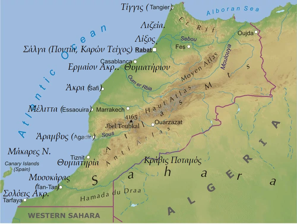 - Ἄτλας ἐλάττων, ὄρος Υψηλός Άτλας Όρος