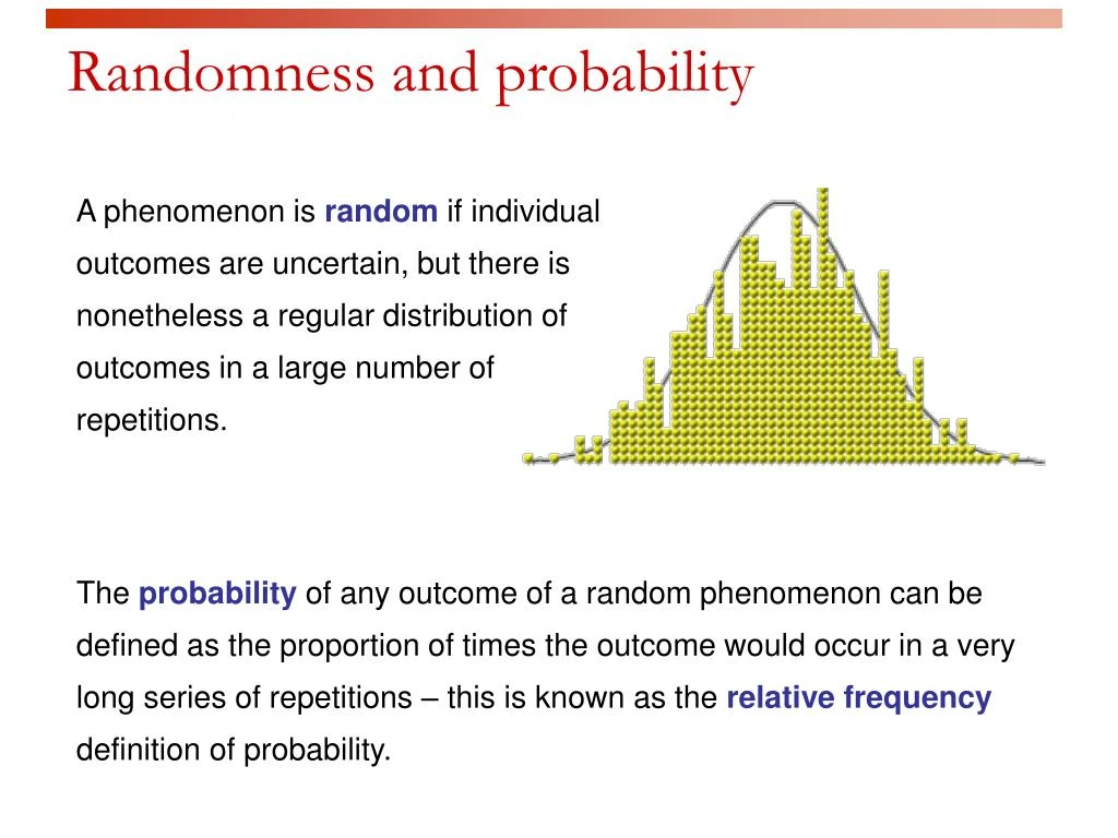 Η ανάπτυξη της έννοιας της τύχης κατά την διάρκεια της ιστορίας υπήρξε σταδιακή. Οι ιστορικοί έχουν αναρωτηθεί γιατί η πρόοδος στο πεδίο της τυχαιότητας υπήρξε τόσο αργή, δεδομένου ότι οι άνθρωποι ήταν αντιμέτωποι με την τύχη από την αρχαιότητα. Η Ντέμπορα Μπένετ προτείνει ότι οι απλοί άνθρωποι αντιμετώπισαν εγγενή δυσκολία στην κατανόηση της τυχαιότητας, παρόλο που η έννοια συχνά λαμβάνεται ως προφανής και αυταπόδεικτη. Αναφέρει μελέτες του Kahneman και του Tversky που κατέληξαν στο συμπέρασμα ότι οι στατιστικές αρχές δεν μαθαίνονται από την καθημερινή εμπειρία επειδή οι άνθρωποι δεν δίνουν σημασία στην αναγκαία λεπτομέρεια για την απόκτηση αυτής της γνώσης.[7]