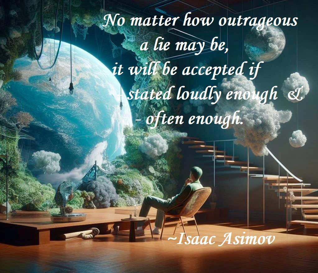 ψεύδος Isaac AsimovΑνεξαρτήτως του πόσο εξωφρενική είναι μία ψευδής είδηση όταν προωθείται επιμόνως και επαναλαμβάνεται συνεχώς τελικά θα γίνει αποδεκτή ως αληθής