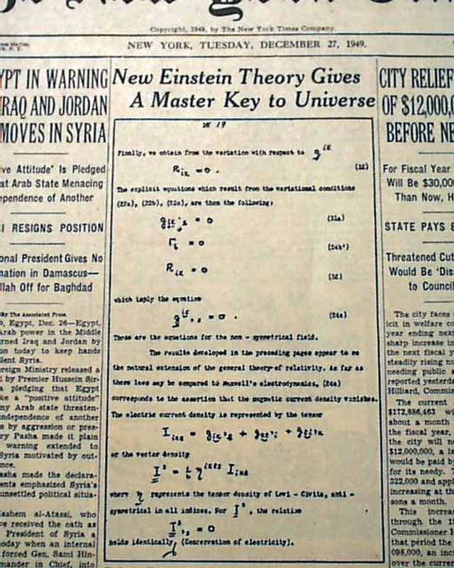 Την ίδια περίπου χρονική περίοδο, έγινε η πρώτη επιβεβαίωση της Γενικής Θεωρίας της Σχετικότητας από τον Arthur Eddington και ο Einstein βρέθηκε στο κέντρο της δημοσιότητας. Η θεωρία της Σχετικότητας και ο δημιουργός της έγιναν πρωτοσέλιδα στις πιο γνωστές εφημερίδες παγκόσμια.