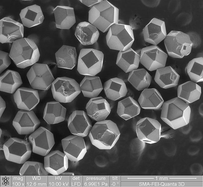 Изображение синтетических алмазов, полученное на растровом электронном микроскопе