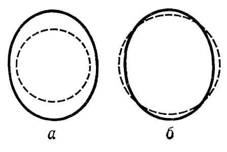 Рис.1,Изменение формы кристаллического шара при нагревании (пунктирная кривая)