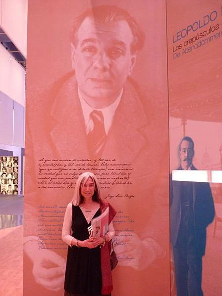 Вдова Борхеса у стенда его памяти на Франкфуртской книжной ярмарке (2010)