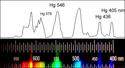 Электрический разряд в горелке ртутной дуговой лампы создаёт видимое излучение также начиная с зоны сине-фиолетового спектра (но не только белого) цвета, а также мощное ультрафиолетовое излучение. Последнее возбуждает свечение люминофора, нанесённого на внутренней стенке внешней колбы лампы. Красноватое свечение люминофора, смешиваясь с бело-зеленоватым излучением горелки, даёт яркий свет, близкий к белому.