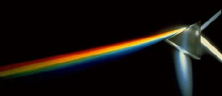 Луч белого света (вход снизу справа) рассеян на его составляющие цвета при проходе через призму. Более слабый луч белого света, выходящего сверху справа был отражен (без дисперсии) от первой поверхности призмы